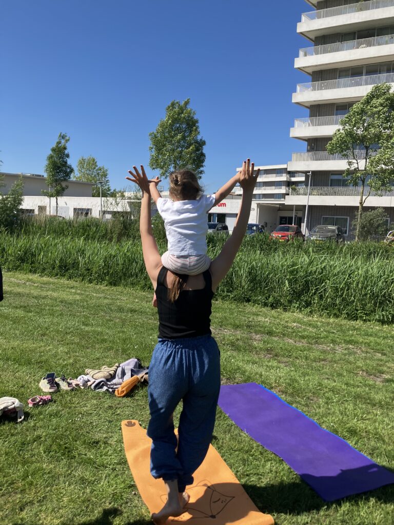 Een les vol aandacht, plezier en verbinding, waarin jullie samen bewegen, ontspannen en echt even tijd voor elkaar hebben.