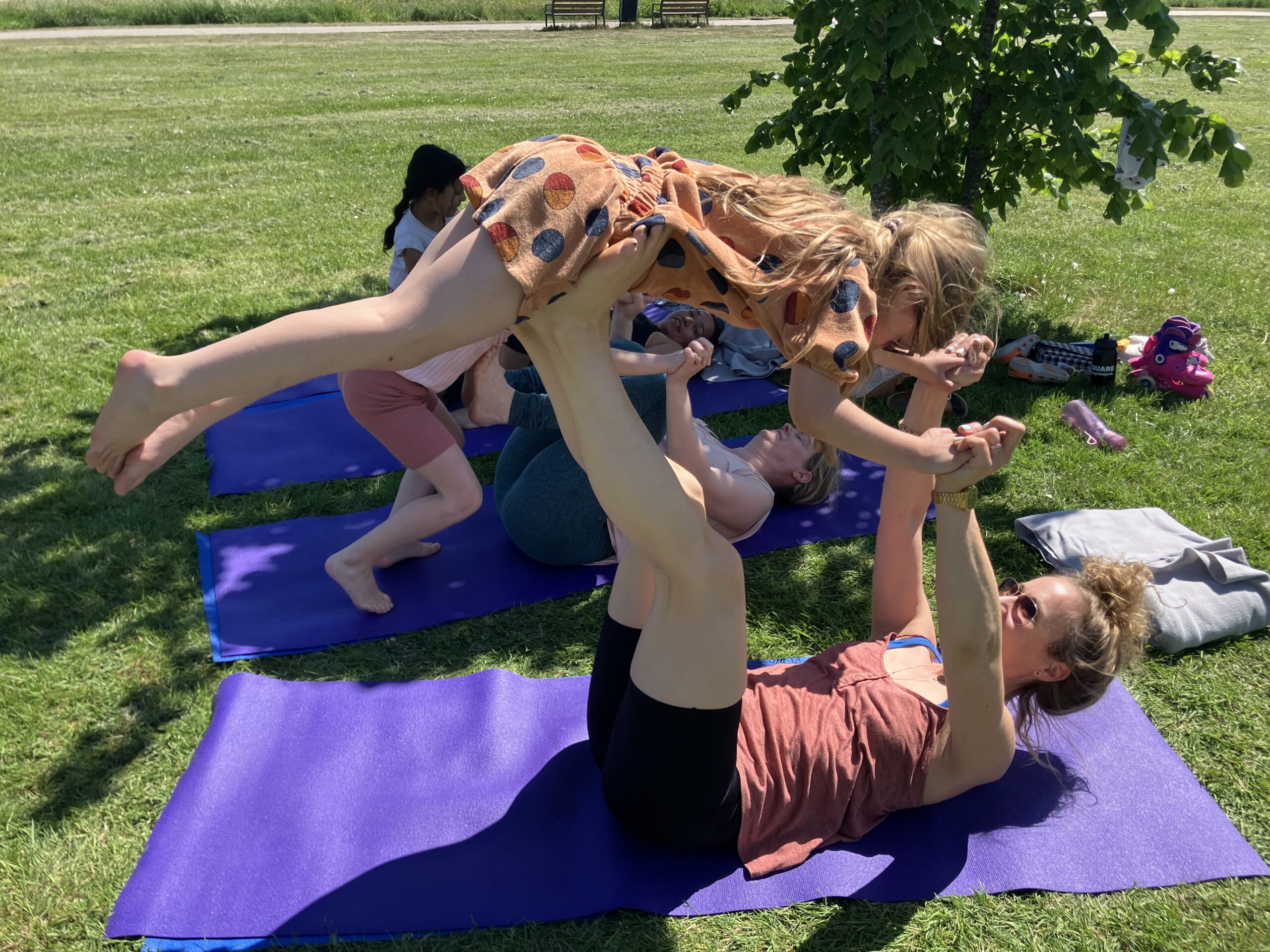 Een yogales voor kinderen van 7 t/m 11 jaar.